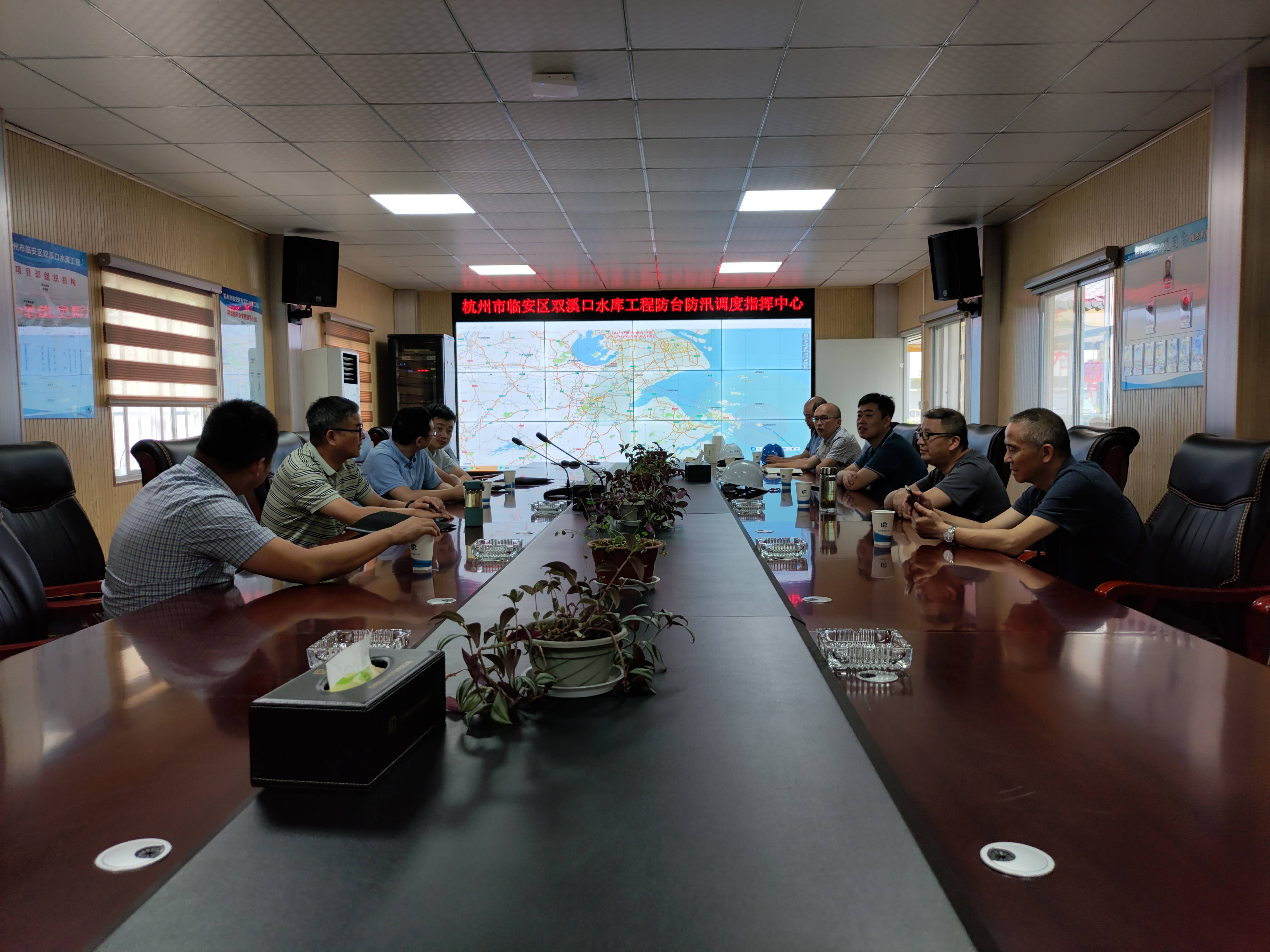 在接到上级气象预测信息后,杭州鲁润公司立即组织各参建单位召开防台防汛专项部署会议。明确各参建单位防台防汛职责,要求施工单位备好备足防汛物资,牵头组织对现场的临时用电、围挡、材料堆放、围堰、工地临时房屋等方面进行了重点检查。针对检查出来的问题,当即督促完成整改,并要求检查人员对整改情况进行复查。同时提前做好了现场人员和物质设备的撤离工作。在台风过境期间,安排专人24小时进行现场水位观测和围堰巡查。对发现的险情,立即会商妥善处置。充分利用智慧工地系统对库区水位、风速风向实时监测,很好的指导了此次防台防汛各项工作。最终杭州市临安区双溪口水库工程人员和设备安全度过此次台风过境险情。防台防汛工作更是得到了省、市、区各级主管部门的一致好评。