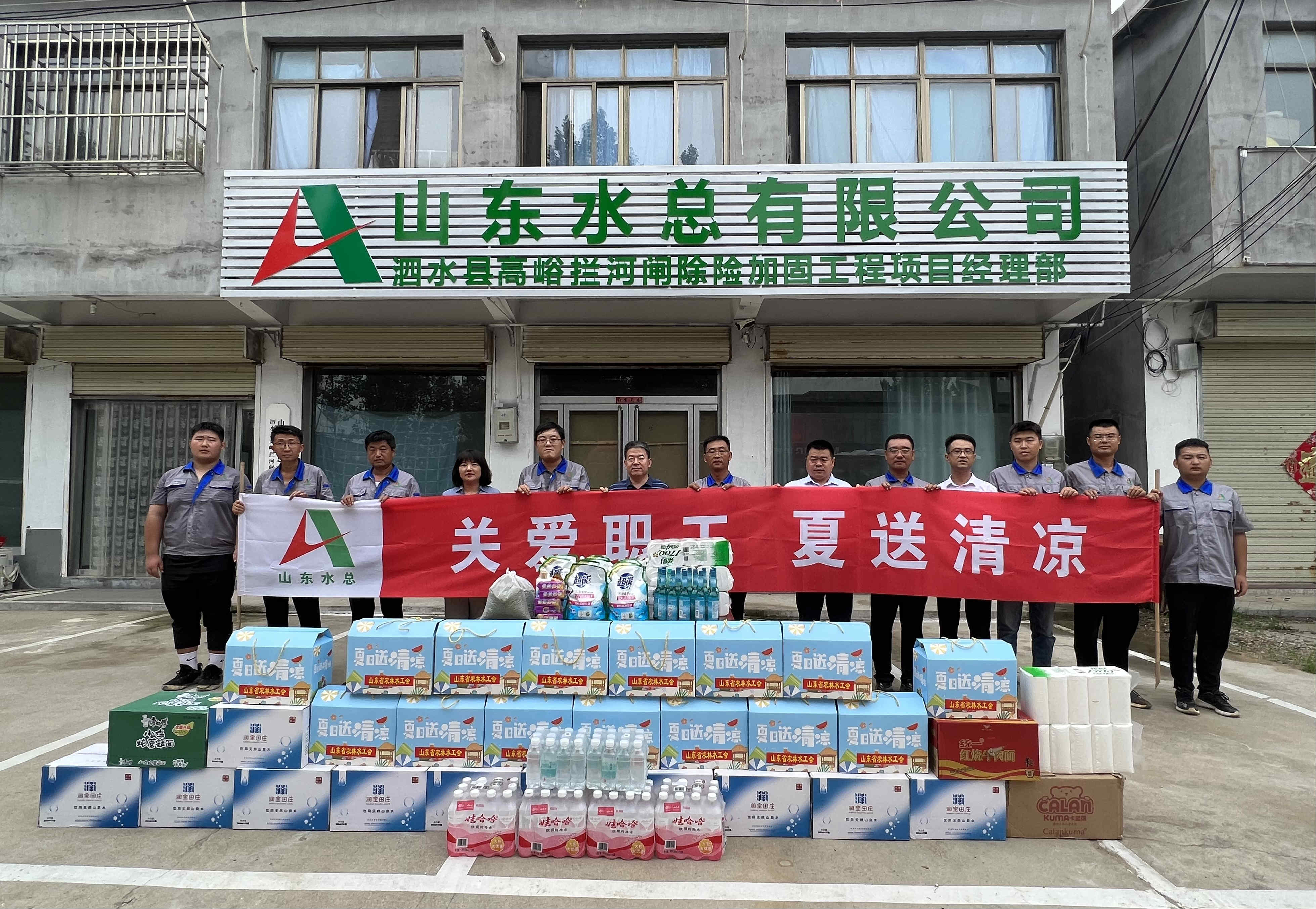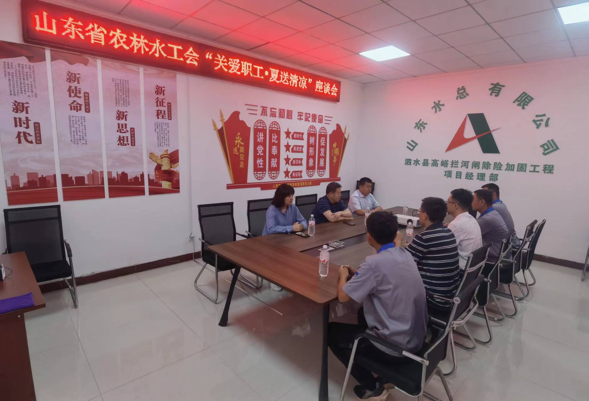 7月19日,山东省农林水工会主席张志刚一行到公司泗水县高峪拦河闸除险加固工程开展“夏送清凉”慰问活动。公司党委副书记、工会主席周少林,党委组织部部长孙凌,第七分公司总经理韩栋,副总经理常征陪同参加慰问。