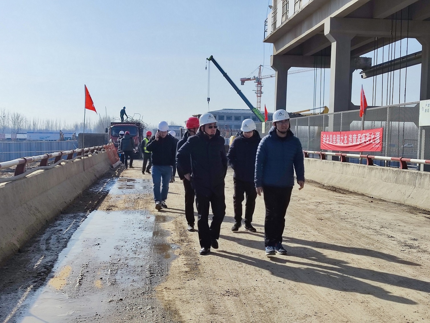 2月14日,公司安全总监郭法文、安全管理部相关人员一行到小清河防洪综合治理工程水牛韩节制闸除险加固项目检查指导工作,第七分公司副总经理李景波陪同。