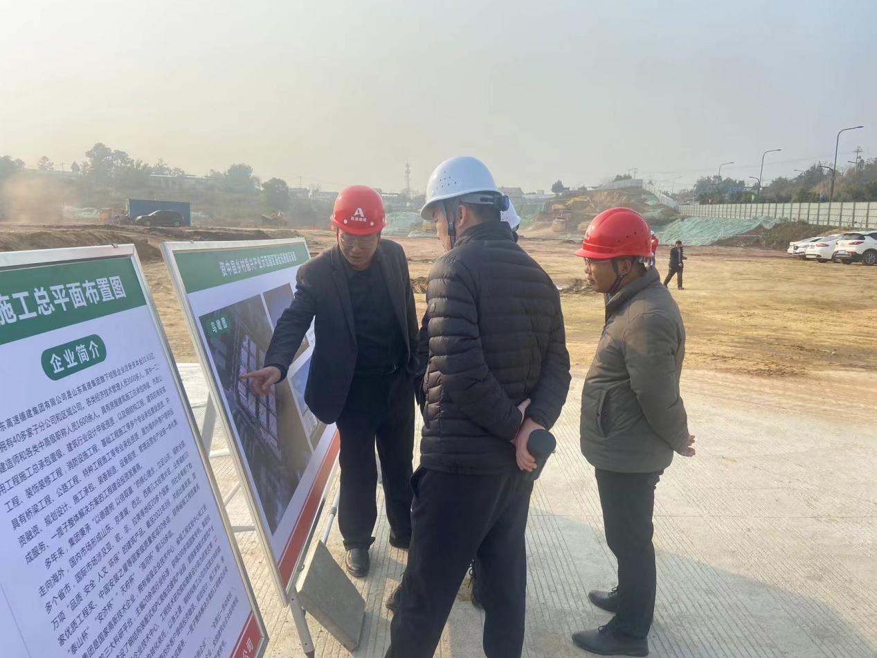 第五分公司总经理蔡国森就项目目前主要施工内容和前期准备工作做了详细汇报。随后靳文硕深入施工现场,对前期开展的准备工作作出了肯定。靳文硕强调,项目主要管理人员要坚守前期取得的主要成果,对于初次涉及的大型房建类项目,在后续施工中要做到办事精细,以严谨扎实的工作态度,完成工程建设。