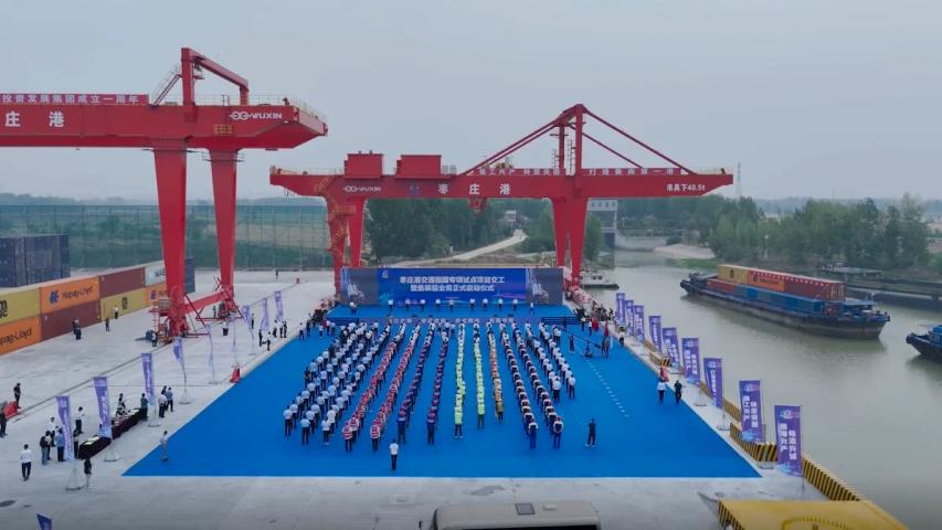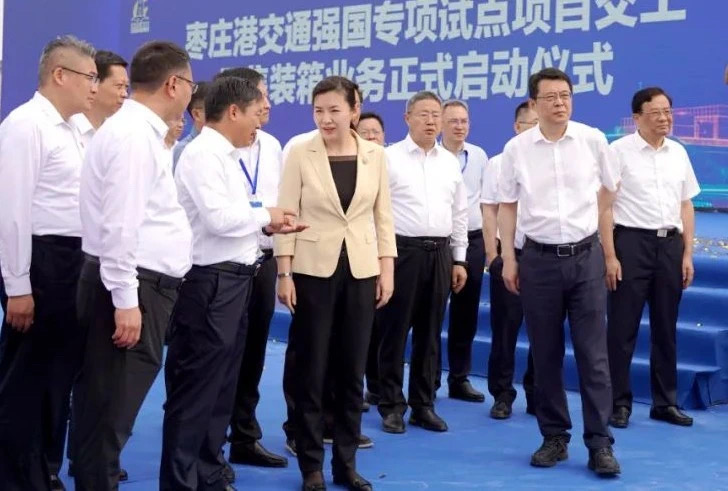 近日,枣庄市重大交通基础设施枣庄港交通强国专项试点项目交工暨集装箱业务启动现场推进会召开。枣庄市委书记张宏伟,市委副书记、市长翟军,市委常委和有关市领导,各区(市)、枣庄高新区党政主要负责同志等参加。公司党委副书记、董事、总经理靳文硕受邀出席该活动仪式,第六分公司总经理曲兴伟陪同参加。