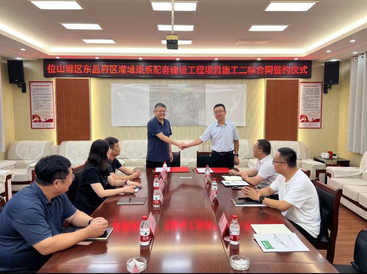 7月15日,二局有限公司新中标的位山灌区东昌府区灌域渠系配套建设工程项目签约仪式在该项目驻地举行,东昌府区水利局代表,发包人代表,承建方二局有限公司代表等参加签约仪式。