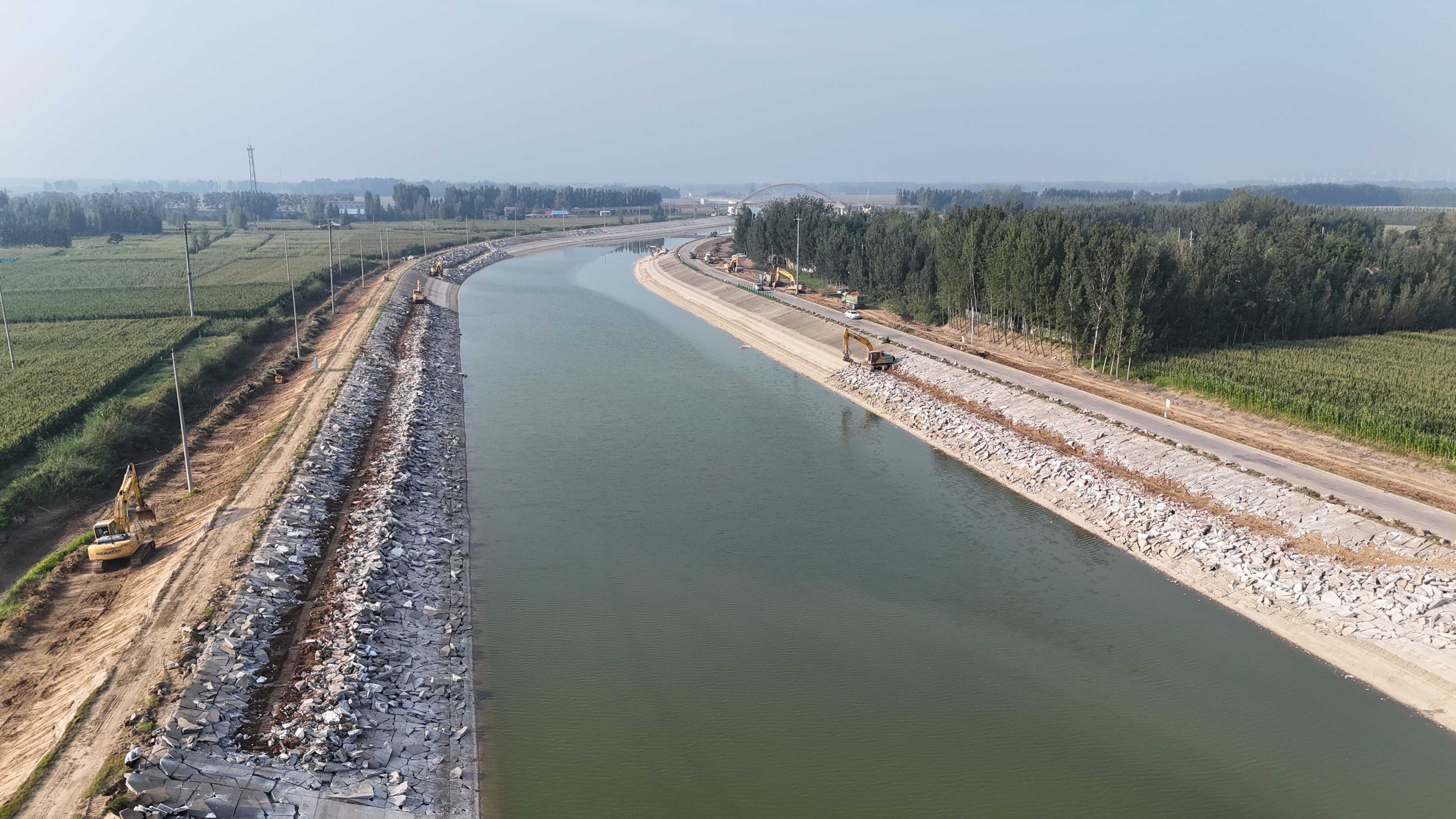 柳长河结合段工程施工3标签约合同价106696384.31元,计划总工期618天。主要施工内容:疏浚工程、护岸工程、红庙公路桥桥梁防撞工程、堤防工程、附属工程及临时工程、水利设施工程。工程的实施对于保障区域防洪安全、促进水路交通发展具有重要意义,将有效提升东平湖老湖区的防洪排涝能力和京杭运河柳长河段的航道通航能力。下一步,项目部将全力以赴抢抓施工黄金期,加速推进项目施工进度,保质保量、坚定不移完成施工任务。